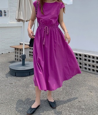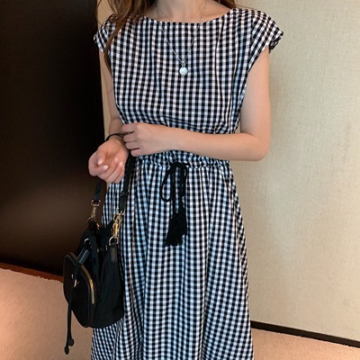 ワンピース ノースリーブ マキシ丈 ロング ラウンドネック シンプル 無地 涼しげ リラクシー 楽ちん ゆったり ルーズ ハイウエスト 切り替え 腰紐 タッセル 大人 カジュアル おしゃれ お洒落 大人可愛い かわいい 可愛い 休日 お出かけ デート 旅行 普段使い 20代 30代 ママ レディース 夏 大きいサイズ S M L XL 2XL ブラック 黒 ベージュ ネイビー 紺 アプリコット チェック柄 ダークグリーン アーミーグリーン フルーツグリーン スカイブルー 水色 パープル 紫 オレンジ