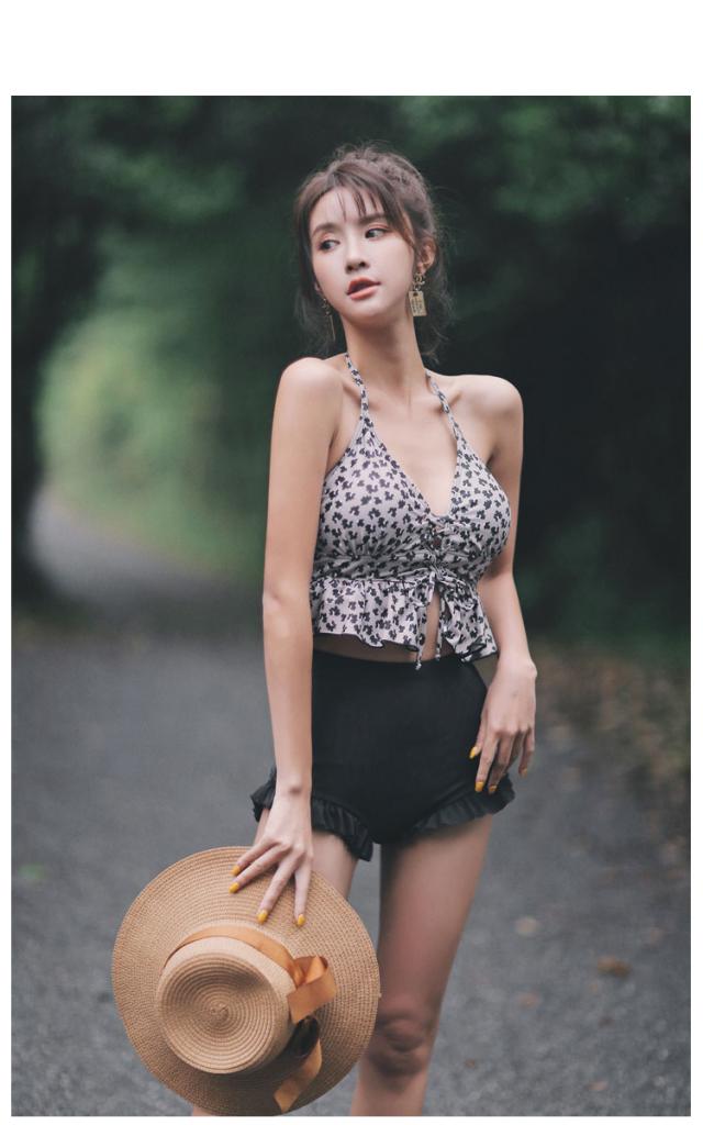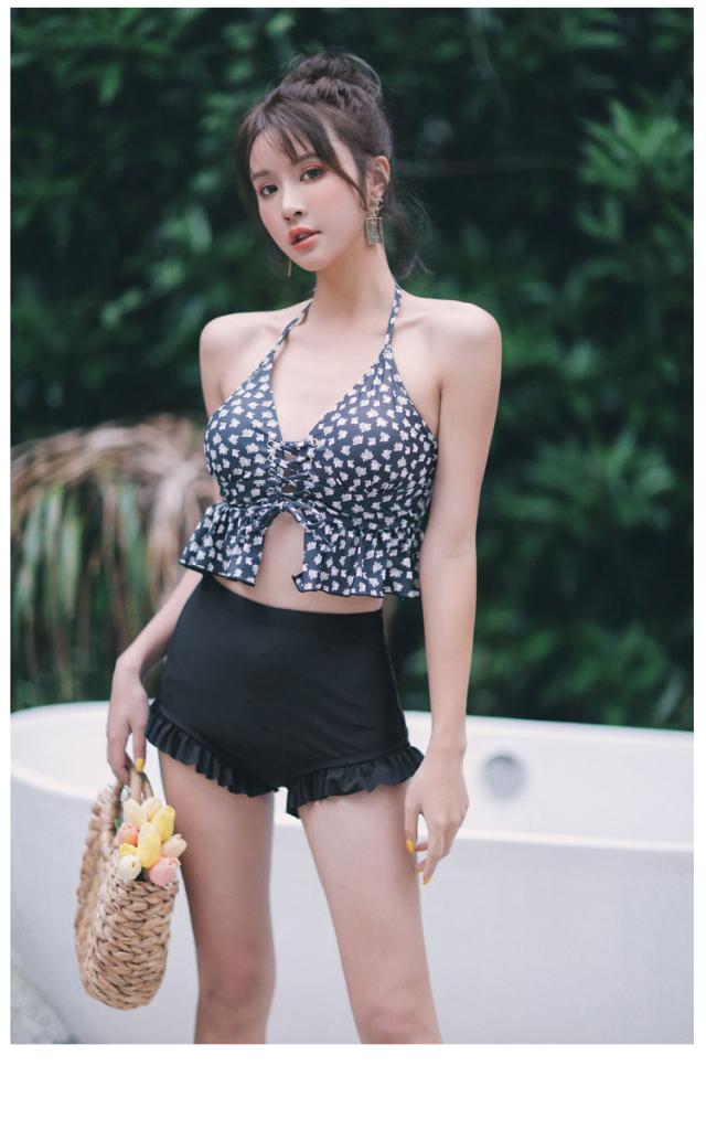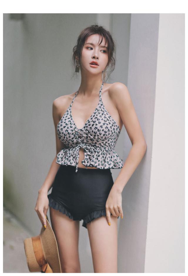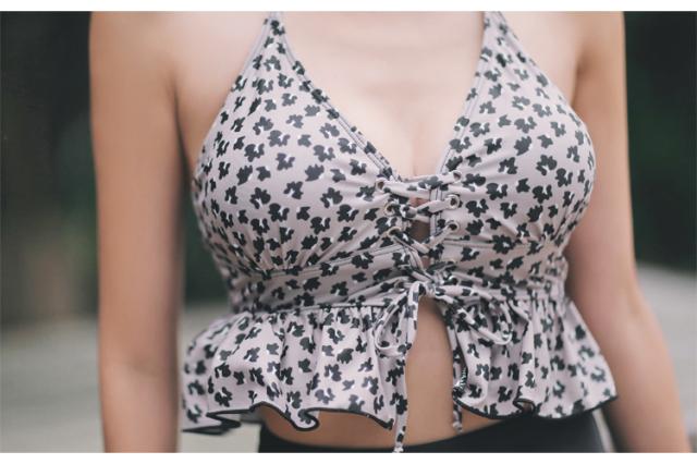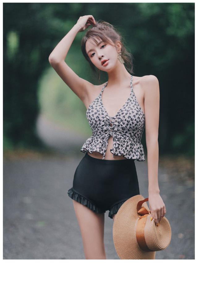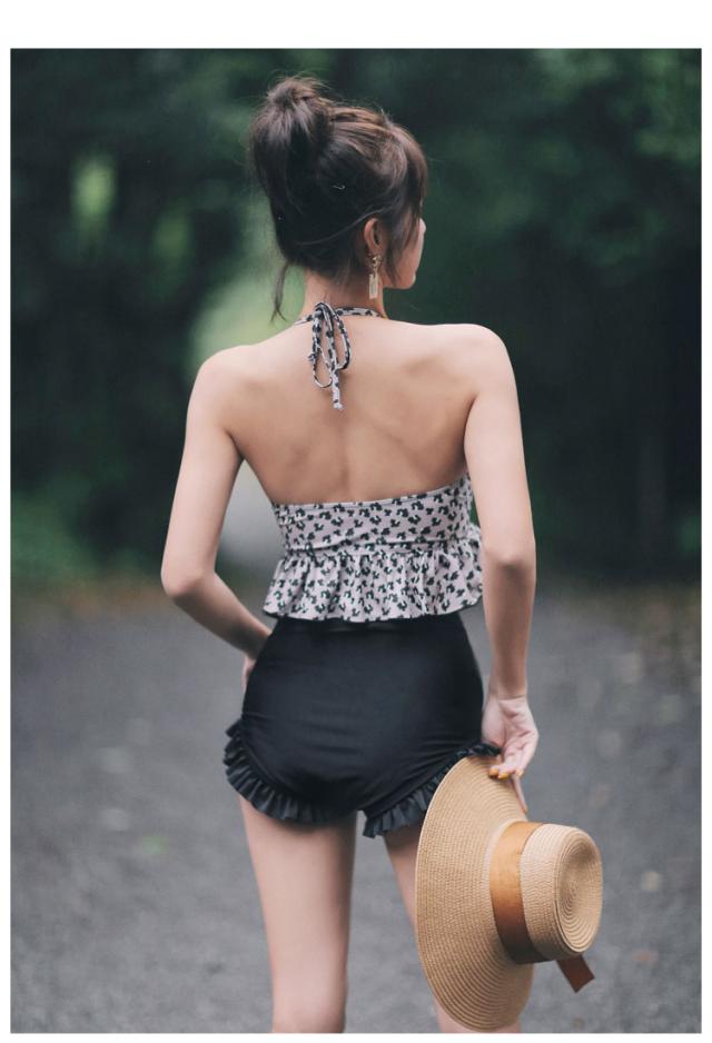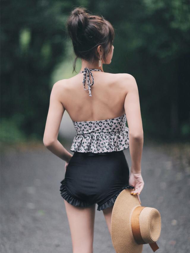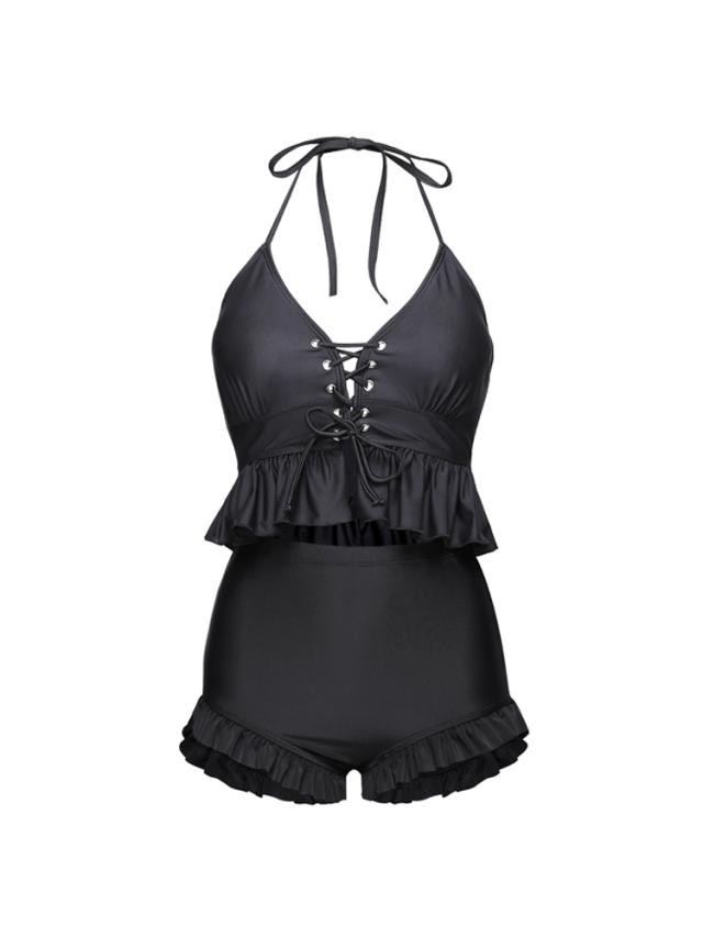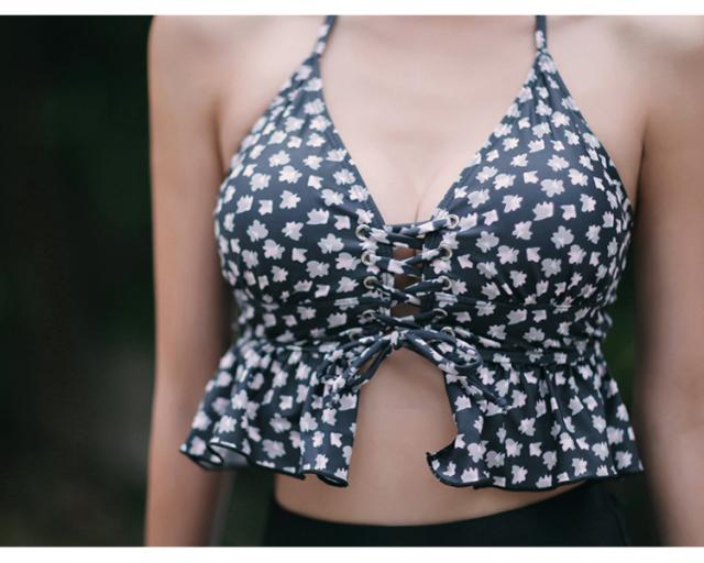 レディース レオパード柄 ビキニ 水着 タンキニ セパレート ホルターネック レースアップ セット 2点セット ツーピース 胸元 谷間 谷間魅せ 盛れる 大人 可愛い カジュアル お洒落 女っぽ ラブリー キュート 美脚 韓国 オルチャン黒 海 ビーチ プール リゾート
