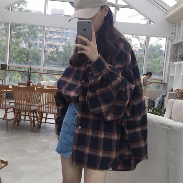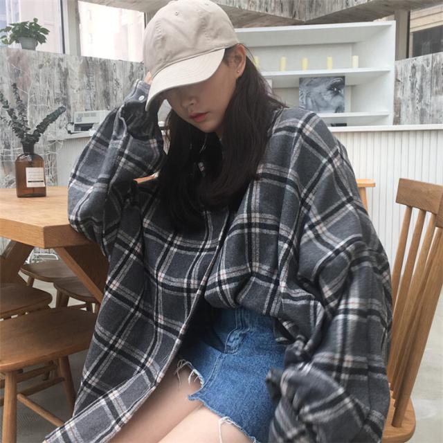 たっぷり分量の身頃と袖が可愛いオーバーサイズチェックシャツ♪