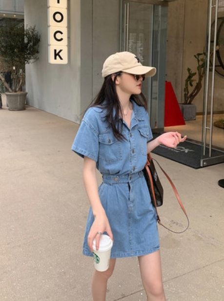 デニムシャツワンピース ワンピース シャツワンピース ショート ショート丈 袖あり 半袖 ハイネック ベルト ウエストマーク 前開き デニム かわいい 大人可愛い きれいめ シンプル カジュアル 大人 おしゃれ お洒落 大人可愛い 大人女子 こなれ感 ラフ 無地 春 夏 10代 20代 30代 レディース 学生 通学 デート お出かけ 女子会 休日 着回し 普段使い 韓国 韓国系 オルチャン サイズ S M L XL 色展開 青 ブルー