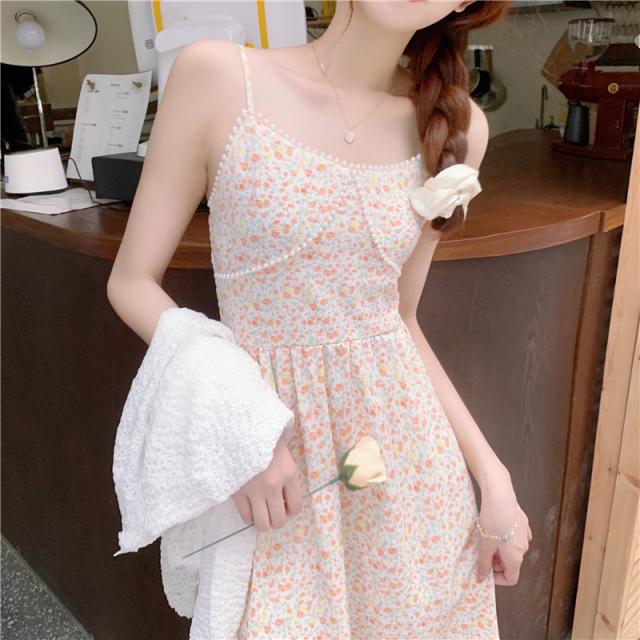 レディースワンピース キャミソール ミディ丈 膝下丈 パール ウエストマーク Aライン フレア 花柄 ドレス 春 夏 大人可愛い きれいめ ドレスアップ ガーリーコーデ パーティー イベント 二次会 ラブリー キュート 存在感 主役級 デートコーデ 大学 学生 キャンパスコーデ 通学 色違い お揃い 双子コーデ カラー イエロー オレンジ サイズ フリーサイズ