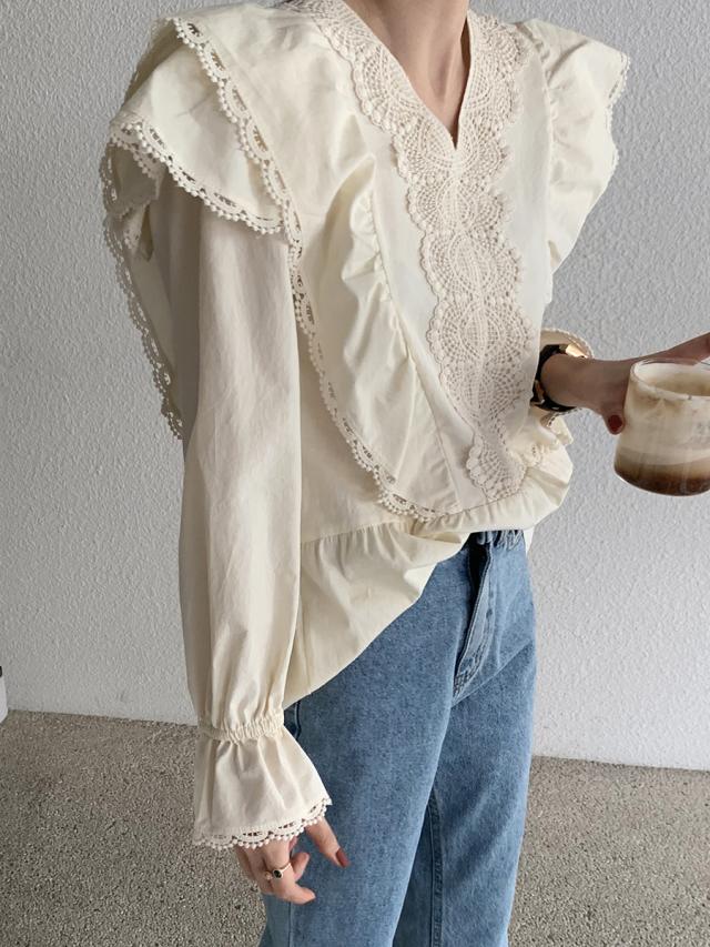 胸元のレース&フリルが可愛いブラウス♪