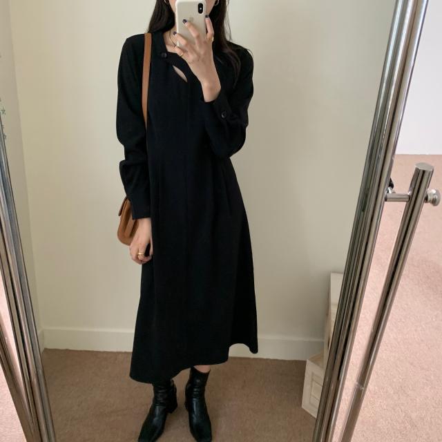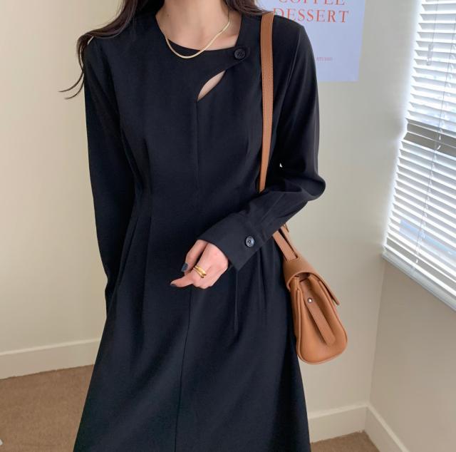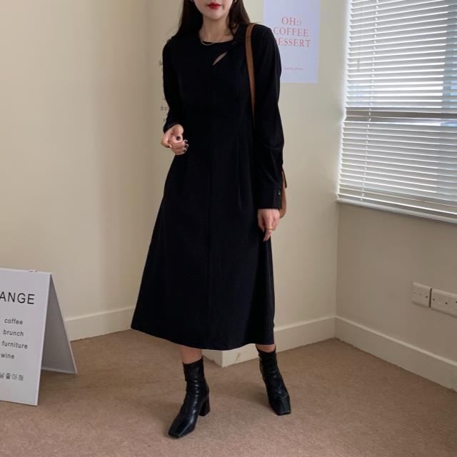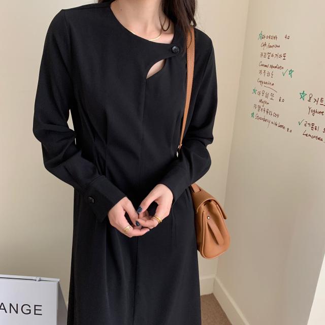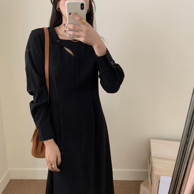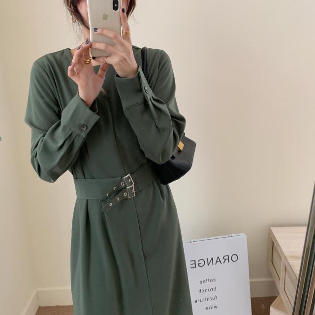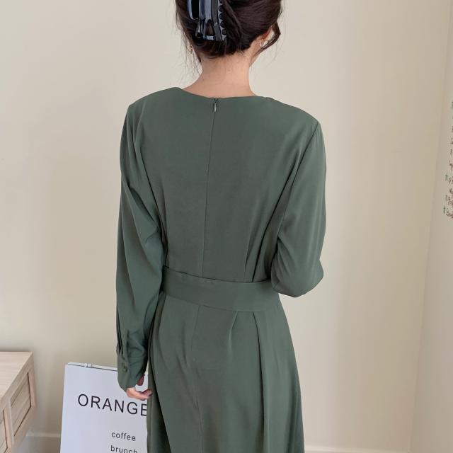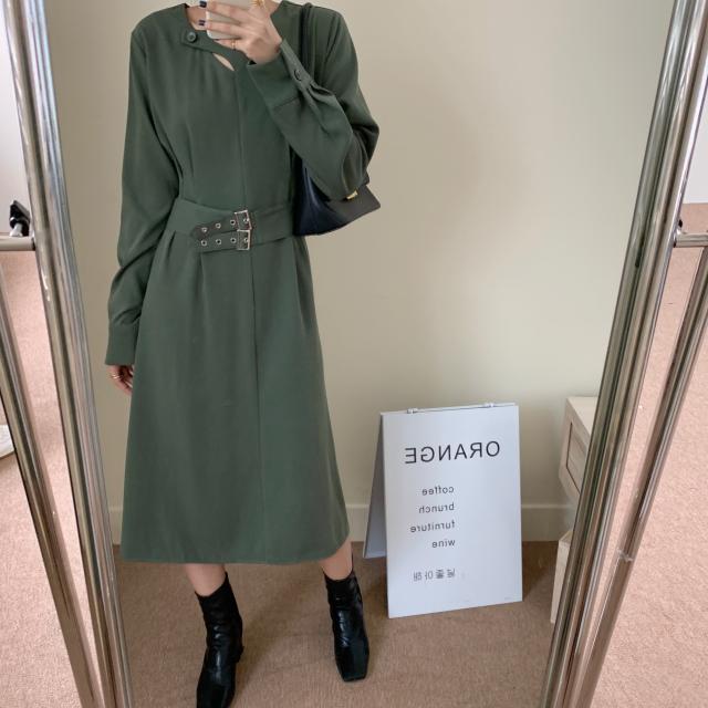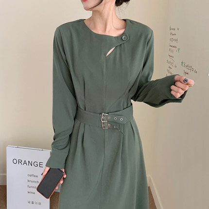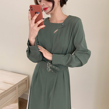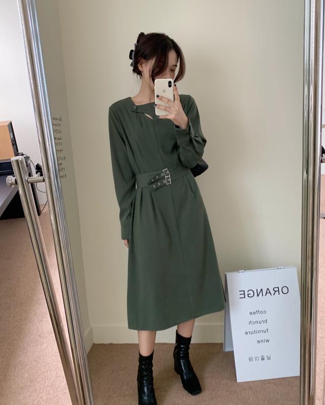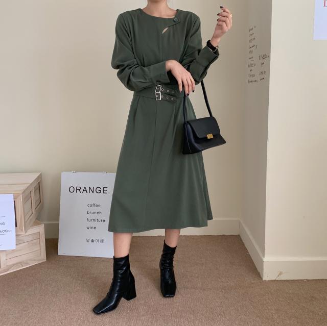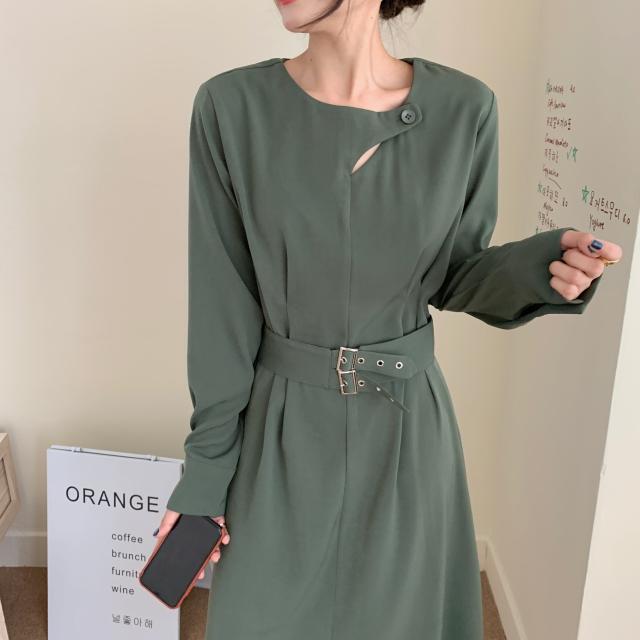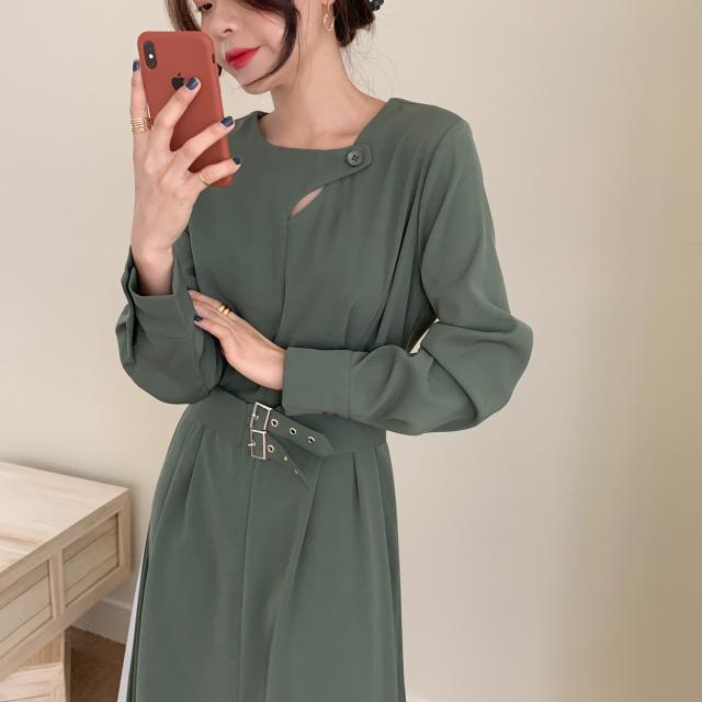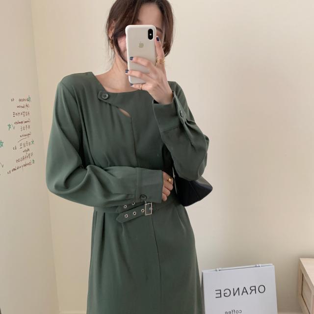 イレギュラーネックワンピース ワンピース フレアワンピース ロング ロング丈 袖あり 長袖 フレア ベルト ウエストマーク ハイウエスト ポリエステル かわいい 大人可愛い きれいめ シンプル カジュアル おしゃれ お洒落 大人可愛い 大人女子 こなれ感 無地 春 夏 秋 10代 20代 30代 レディース 学生 通学 デート お出かけ 女子会 休日 普段使い 韓国 韓国系 オルチャン 色展開 黒 ブラック 緑 グリーン