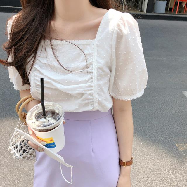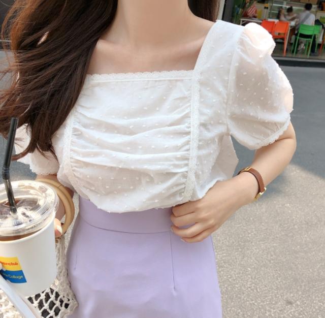 スクエアネックパフスリーブブラウス トップス ブラウス ロング ロング丈 袖あり 半袖 長袖 パフスリーブ スクエアネック レース 透け感 かわいい 大人可愛い きれいめ シンプル カジュアル おしゃれ お洒落 大人可愛い 大人女子 こなれ感 ラブリー キュート ガーリー 無地 春 夏 10代 20代 30代 レディース 学生 通学 デート お出かけ 女子会 休日 着回し 普段使い 韓国 韓国系 オルチャン サイズ S M L XL 色展開 白 ホワイト 緑 グリーン