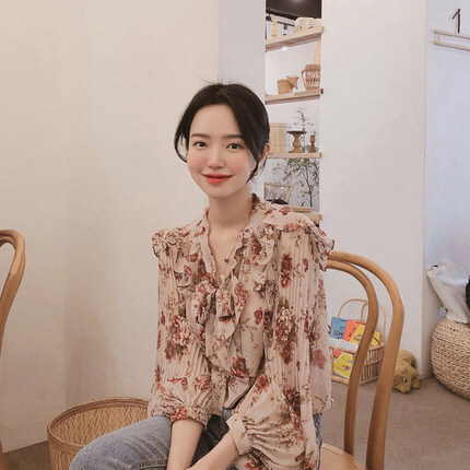 花柄ボウタイブラウス トップス ブラウス 袖あり 長袖 Vネック シフォン フリル リボン 透け感 かわいい 大人可愛い きれいめ シンプル カジュアル おしゃれ お洒落 大人可愛い 大人女子 こなれ感 ラブリー キュート ガーリー 花柄 小花柄 フラワー 春 夏 10代 20代 30代 レディース 学生 通学 デート お出かけ 女子会 休日 着回し 普段使い 韓国 韓国系 オルチャン サイズ S M L 色展開 赤 レッド
