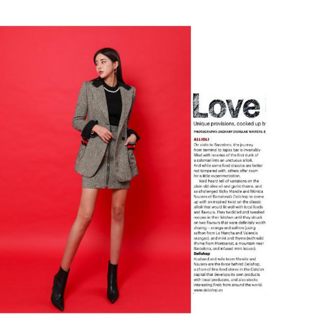 すっきり華奢見えするジャケットとハイウエストスカートでスタイルアップ