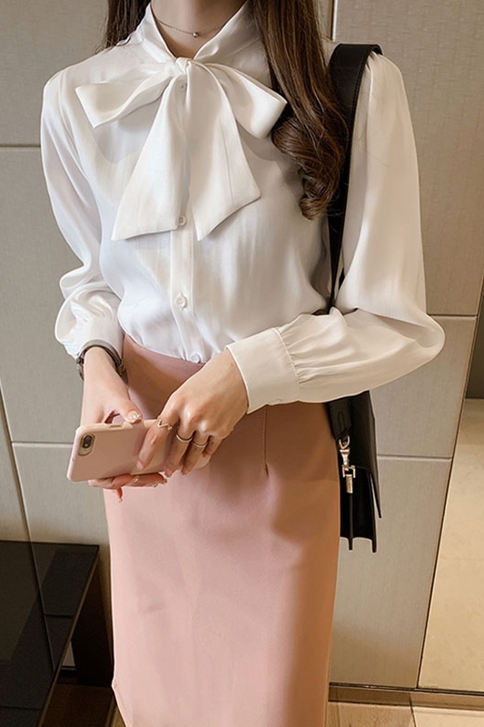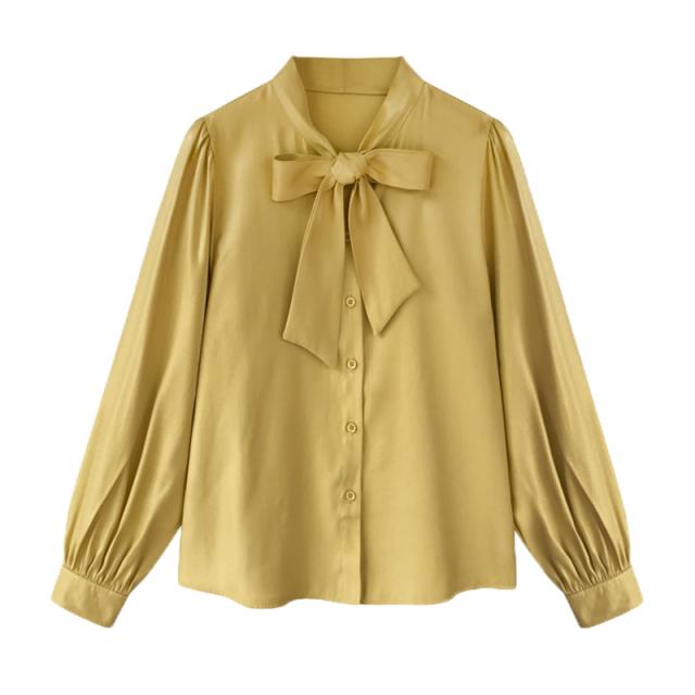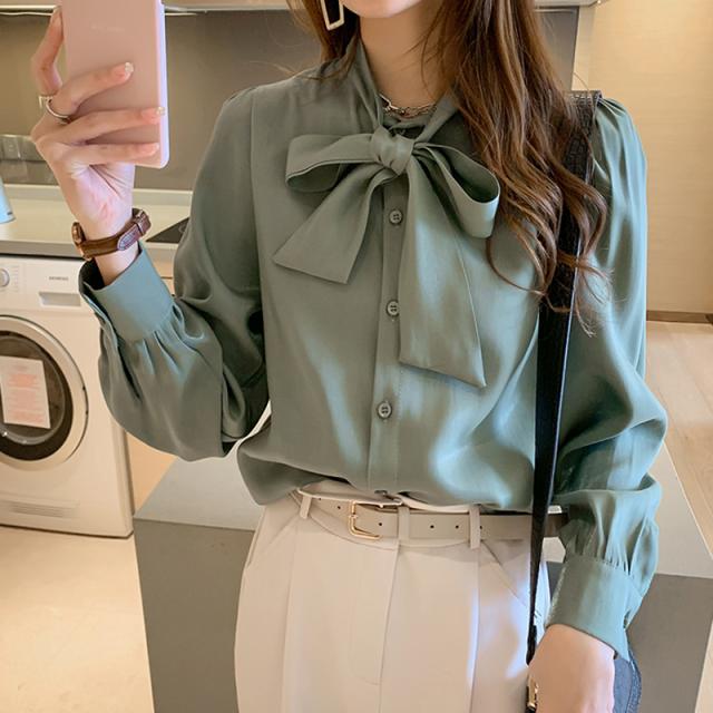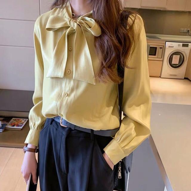 ボウタイブラウス トップス シャツ ブラウス 袖あり 長袖 シフォン 前開き かわいい 大人可愛い きれいめ シンプル カジュアル おしゃれ お洒落 大人可愛い 大人女子 とろみ感 無地 春 夏 秋 10代 20代 30代 レディース OL 通勤 学生 通学 デート お出かけ 公園デビュー 女子会 休日 着回し 普段使い 韓国 韓国系 オルチャン ファッション サイズ S M L XL 2XL 色展開 白 ホワイト 緑 グリーン 黄色 イエロー アプリコット