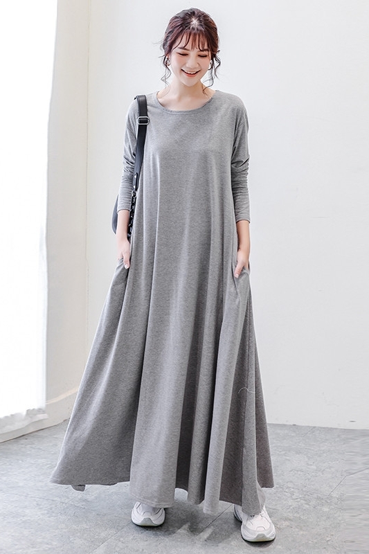 足首にかかるほどのマキシ丈がリラックスムード満載な無地ワンピース♪