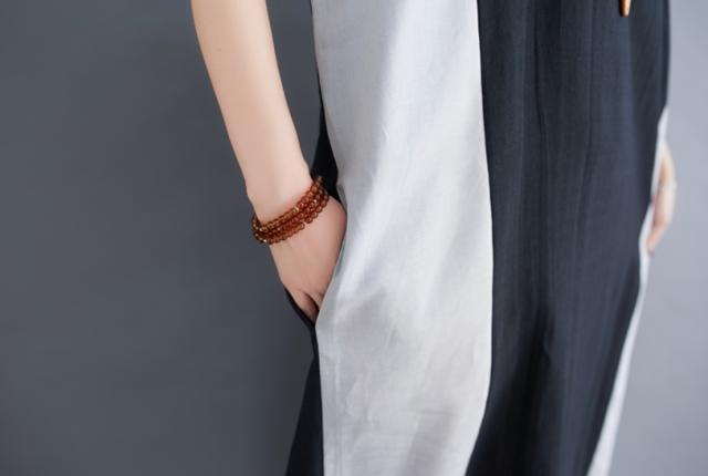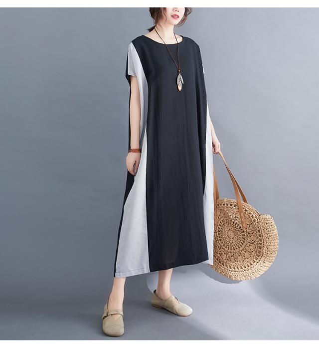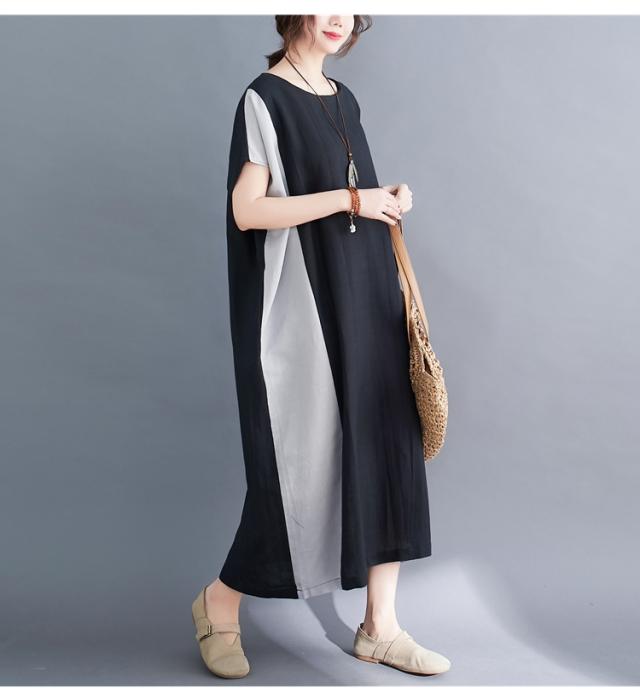 バイカラーワンピース レディース ナチュラル 膝下 ロング丈 袖あり 半袖 ラウンドネック セミフレア コクーン 綿 ポリエステル 大人可愛い シンプル カジュアル 大人 おしゃれ おうちコーデ 大人女子 こなれ感 とろみ感 無地 春 夏 デート お出かけ