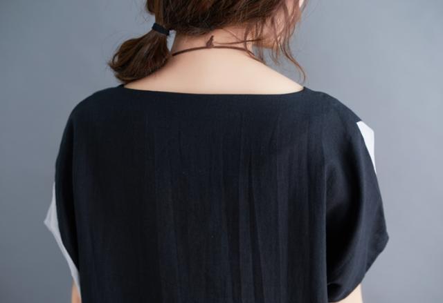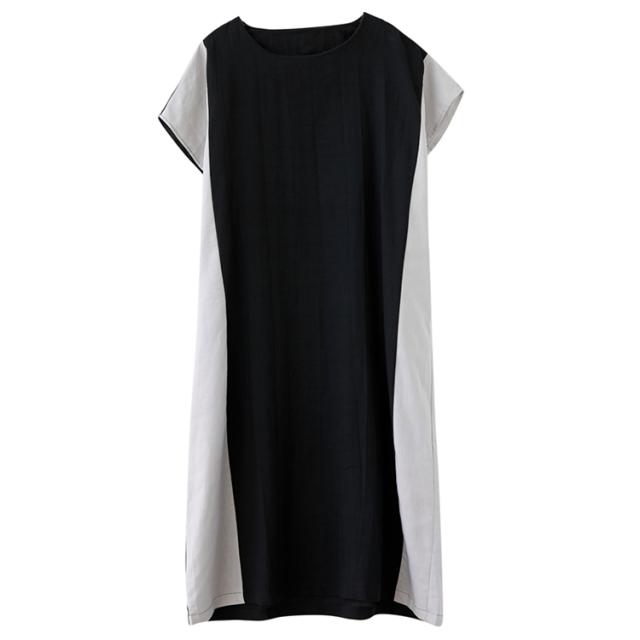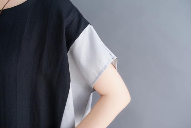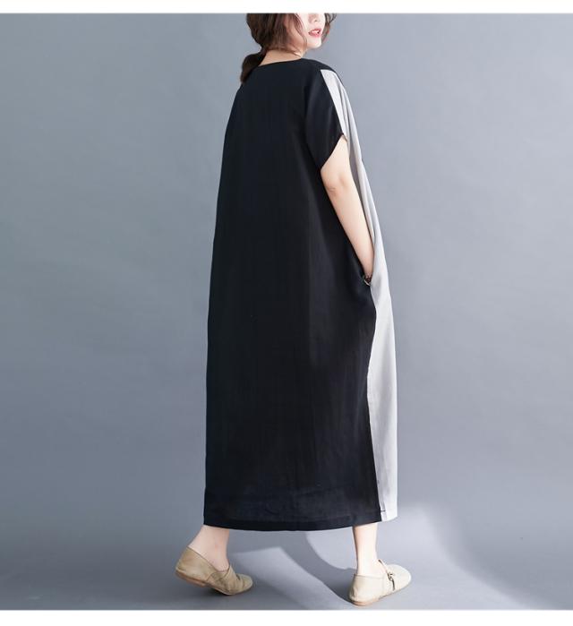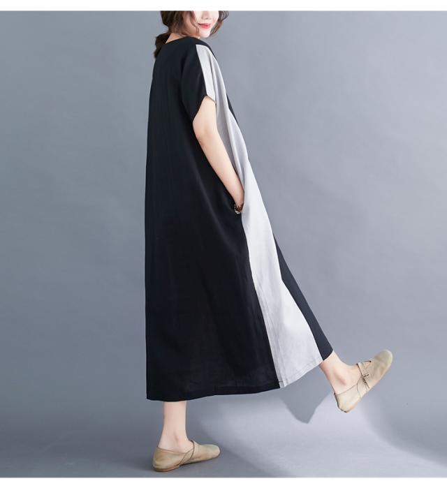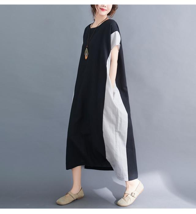 バイカラーワンピース ワンピース 膝下 ロング丈 袖あり 半袖 ラウンドネック セミフレア 綿 ポリエステル 大人可愛い シンプル カジュアル 大人 おしゃれ お洒落 大人可愛い 大人女子 こなれ感 とろみ感 無地 春 夏 10代 20代 30代 40代 レディース 通学 デート お出かけ 公園デビュー 女子会 休日 普段使い ファッション サイズ L XL 黒 ブラック