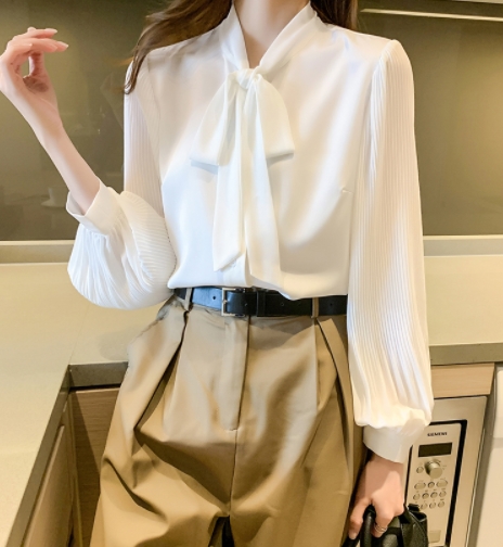 トップス シャツ ブラウス 白シャツ 長袖 Vネック 襟なし リボン シフォン かわいい 大人可愛い きれいめ シンプル 上品 無地 春 夏 秋 冬 オールシーズン 入学式 入園式 卒業式 卒園式 参観日 20代 30代 40代 レディース ママ ビジネス OL 通勤 女子会 着回し S M L XL 2XL