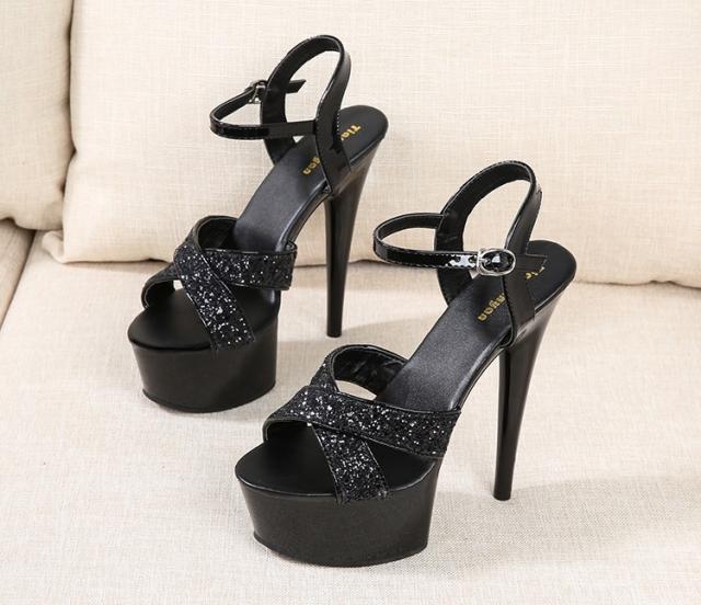 サンダル レディース 15cmヒール スーパー ハイヒール 厚底 PU クロス クリア ラメ スパンコール アンクルストラップ 美脚 脚長 華やか ゴージャス エレガント 主役級 存在感 お洒落 おしゃれ きれいめ レディライク 大人 大人女子 通勤 お出かけ デート 旅行 休日 パーティー イベント ナイトクラブ キャバ嬢 小さいサイズ 22.0cm 22.5cm 23.0cm 23.5cm 24.0cm 24.5cm 25.0cm ブラック 黒 シルバー 銀色