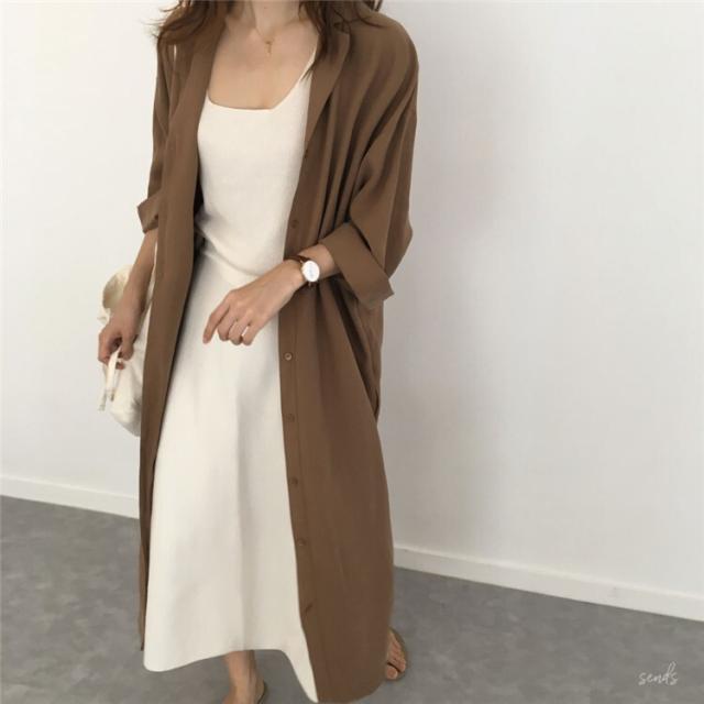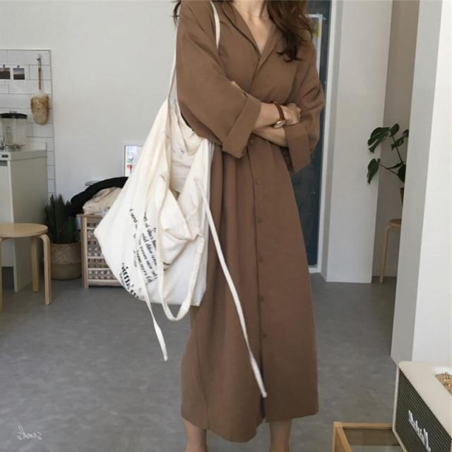 開襟シャツワンピース ワンピース シャツワンピース ロング ロング丈 袖あり 長袖 Vネック 襟付き フレア Aライン ウエストマーク 前開き かわいい 大人可愛い きれいめ 上品 おしゃれ お洒落 大人可愛い 大人女子 ラブリー キュート ガーリー 無地 春 夏 秋 10代 20代 30代 レディース 学生 通学 デート お出かけ 公園デビュー 女子会 休日 着回し 普段使い 重ね着 韓国 韓国系 オルチャン ファッション サイズ S M L XL 2XL 色展開 黒 ブラック 茶色 ブラウン