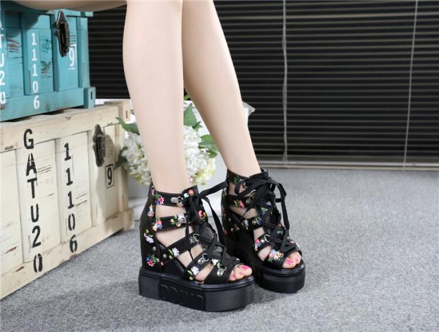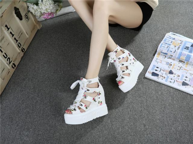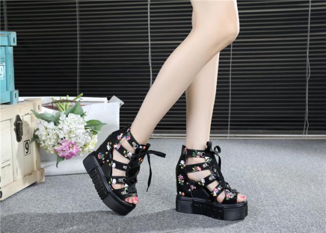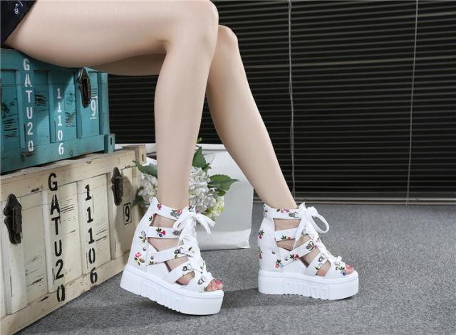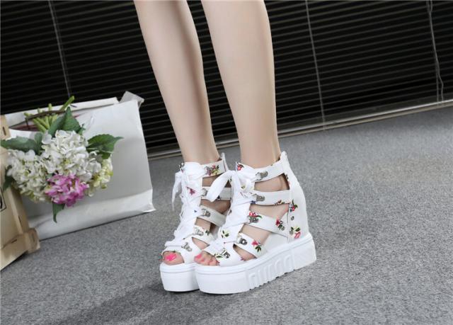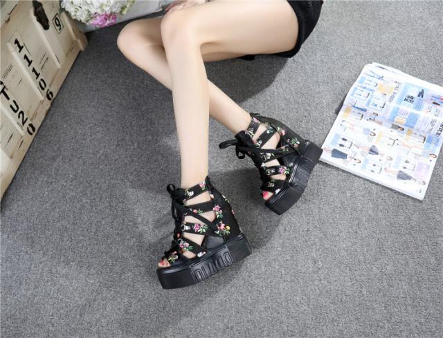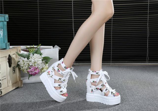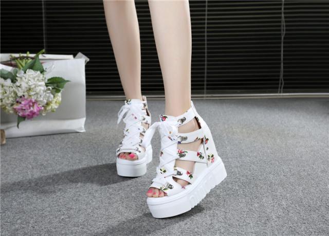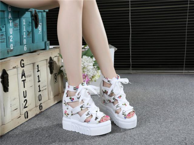 花柄が可愛いレーズアップ厚底サンダル♪