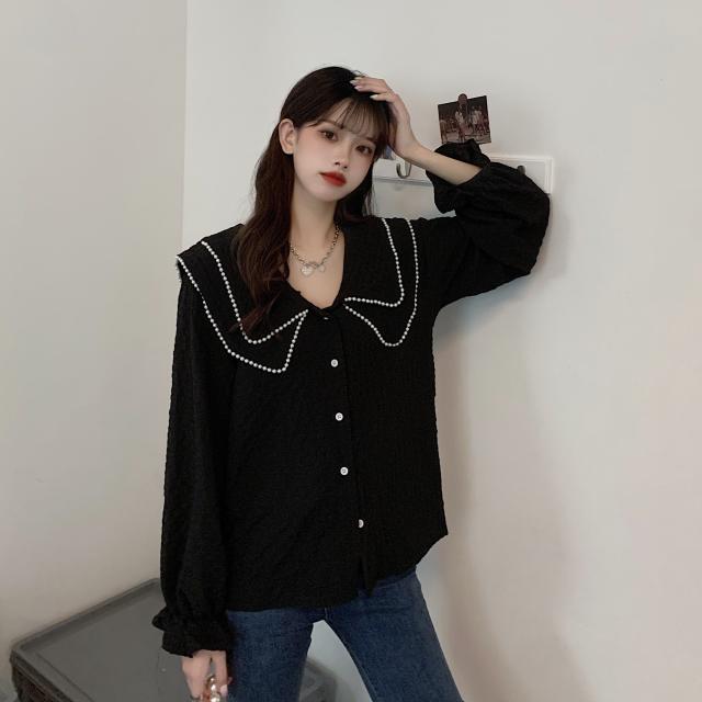 パール衿ブラウス トップス ブラウス 袖あり 長袖 襟付き 前開き ポリエステル かわいい 大人可愛い シンプル おしゃれ お洒落 かっこいい 大人可愛い ラブリー キュート ガーリー 無地 春 夏 秋 0 10代 20代 レディース 学生 通学 デート お出かけ 女子会 休日 着回し 普段使い 重ね着 韓国 韓国系 オルチャン ファッション サイズ M L XL 2XL 3XL 4XL 黒 ブラック
