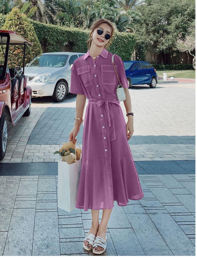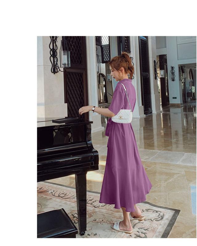 半袖シャツワンピース ワンピース シャツワンピース ロング ロング丈 袖あり 半袖 襟付き フレア 切り替えデザイン 前開き ポリエステル かわいい 大人可愛い きれいめ シンプル カジュアル 大人 おしゃれ お洒落 大人可愛い 大人女子 こなれ感 主役級 無地 プリント 春 夏 10代 20代 30代 レディース 学生 通学 デート お出かけ 公園デビュー 女子会 休日 普段使い 韓国 韓国系 オルチャン ファッション サイズ XS S M L XL 黒 ブラック 赤 レッド 紫 パープル 黄色