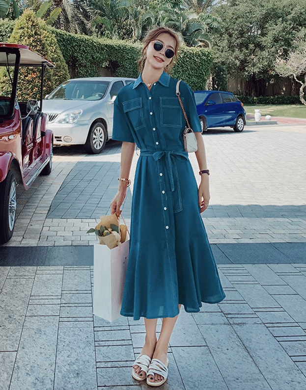 ワンピース 半袖 シャツ ロング 丈 袖あり 襟付き フレア 切り替えデザイン 前開き 大人 可愛い きれいめ シンプル カジュアル カラバリ 大人 おしゃれ お洒落 大人女子 こなれ感 主役級 無地 プリント 春 夏 デート お出かけ 女子会 休日 普段使い