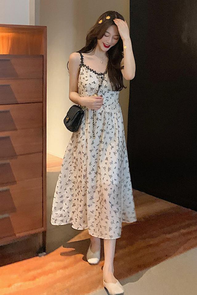 花柄キャミワンピース ワンピース フレアワンピース 膝下 ロング ロング丈 袖なし ノースリーブ Vネック フレア Aライン レース かわいい 大人可愛い きれいめ 大人 おしゃれ お洒落 大人可愛い ラブリー キュート ガーリー 花柄 小花柄 フラワー ストライプ 春 夏 10代 20代 30代 レディース 学生 通学 デート お出かけ 女子会 休日 着回し 普段使い 重ね着 韓国 韓国系 オルチャン ファッション サイズ S M L XL 2XL 3XL 4XL 大きいサイズ ベージュ