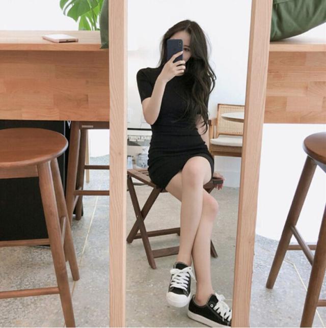 レディース タイト ワンピース ショート丈 膝上 袖あり 半袖 長袖 ラウンドネック タイト 細身 Iライン 綿 きれいめ シンプル カジュアル セクシー おしゃれ かっこいい 大人 可愛い 女子 無地 春 夏 10代 20代 30代 学生 通学 デート お出かけ 女子会 休日 イベント 白 黒