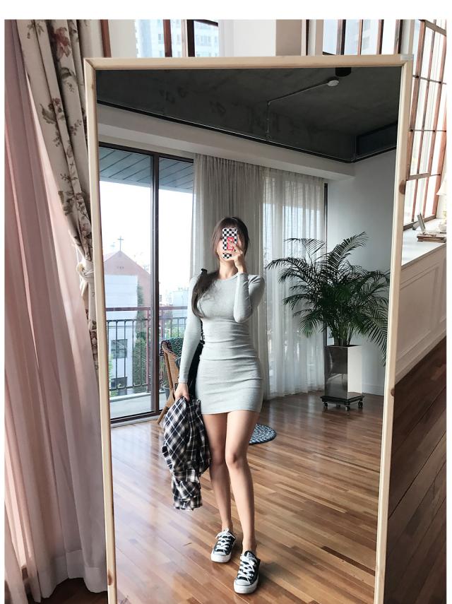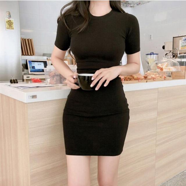 タイトワンピース ワンピース ショート ショート丈 膝上 袖あり 半袖 長袖 ラウンドネック タイト 細身 Iライン 綿 きれいめ シンプル カジュアル 大人 おしゃれ お洒落 大人可愛い 大人女子 無地 春 夏 10代 20代 30代 レディース 学生 通学 デート お出かけ 女子会 休日 着回し 普段使い 重ね着 韓国 韓国系 オルチャン ファッション サイズ S M L 白 ホワイト 黒 ブラック 青 ブルー 灰色 グレー