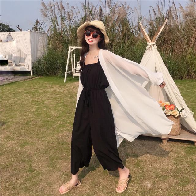 ウエスト リボン オールインワン レディース 袖なし 袖あり ノースリーブ 長袖 パフスリーブ スクエアネック シフォン ウエストマーク 前開き 大人 可愛い きれいめ ラフ シンプル カジュアル 大人 お洒落 こなれ感 韓国 オルチャン 黒 白 ピンク 春 夏 お出かけ 休日 着回し