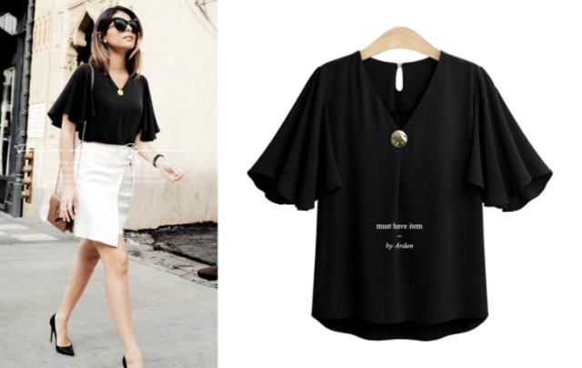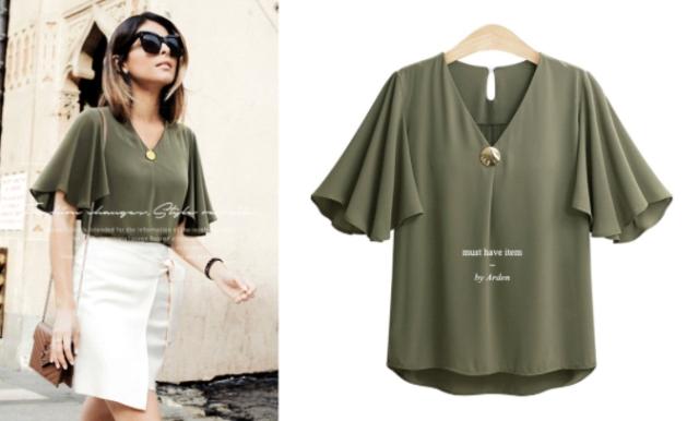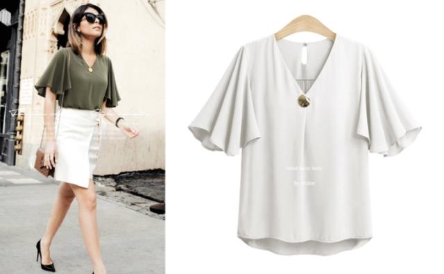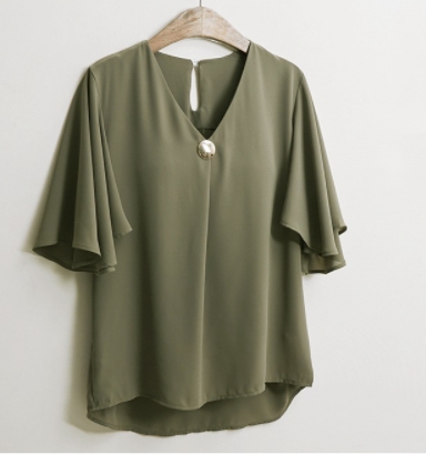 ベーシックなVネックとフレアスリーブでおしゃれなポイントを足した、Tシャツ♪