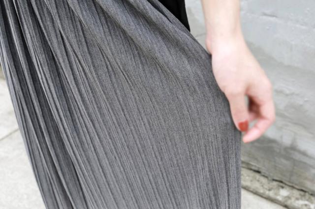 ハイウエストのプリーツがきれいなロングスカートです。リゾート気分も味わえます。