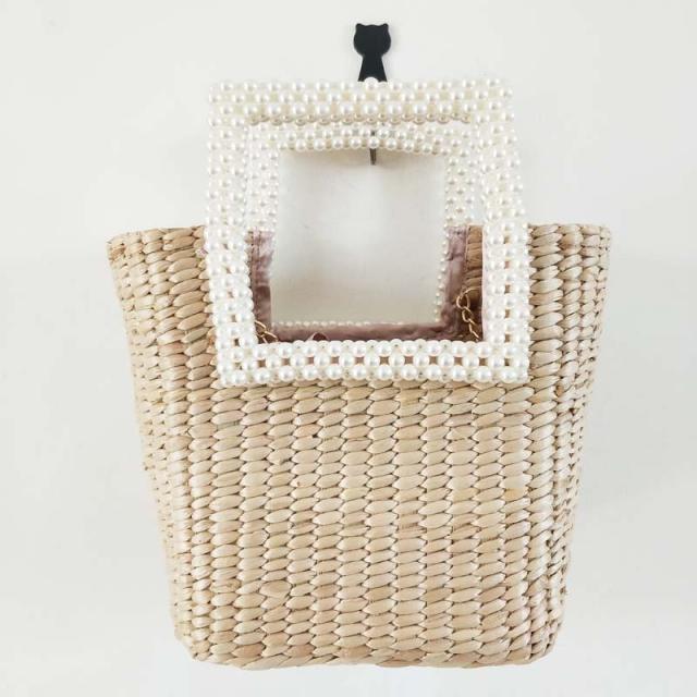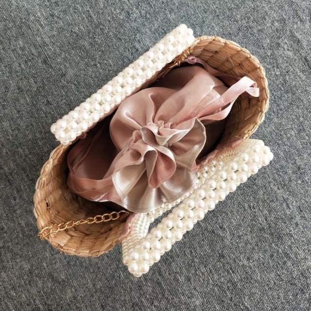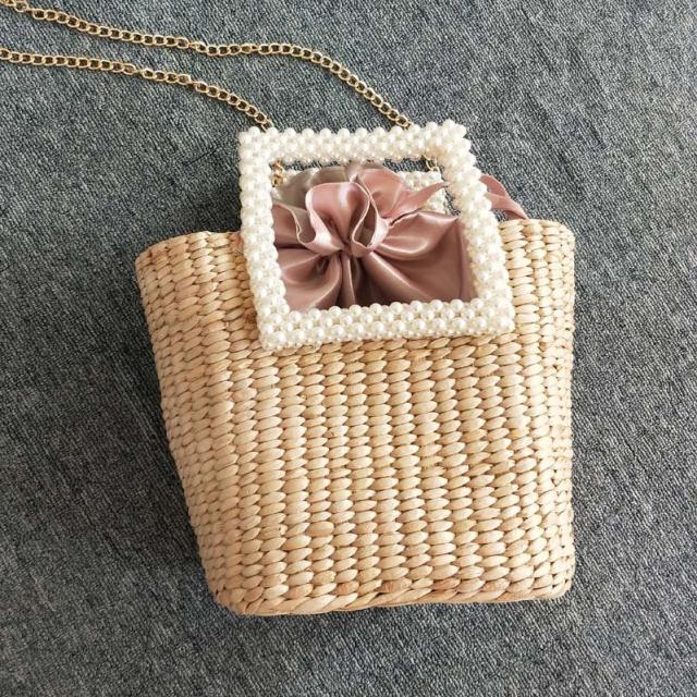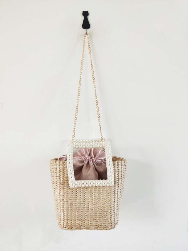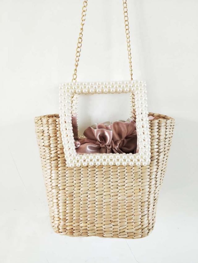かご バッグ レディース パール ハンドル チェーン付き ショルダー 巾着 ピンク ベージュ 春 夏 かわいい シンプル カジュアル ラフ ナチュラル ラブリー おしゃれ 合わせやすい 休日 リゾート お出かけ お呼ばれ パーティー イベント 女子会 OL 学生 大学生 ママ 通勤 通学