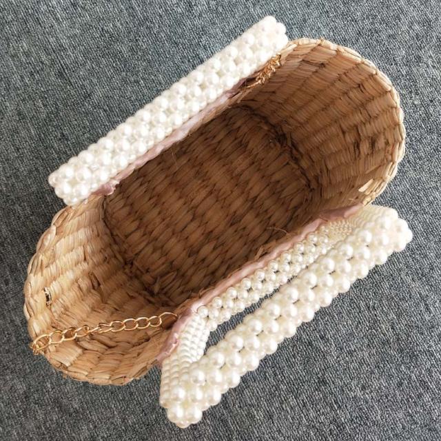 清楚で上品な印象のフェイクパールで仕上げたバッグは