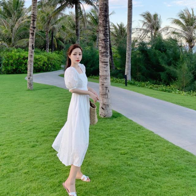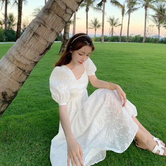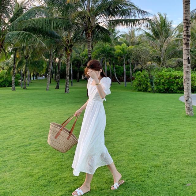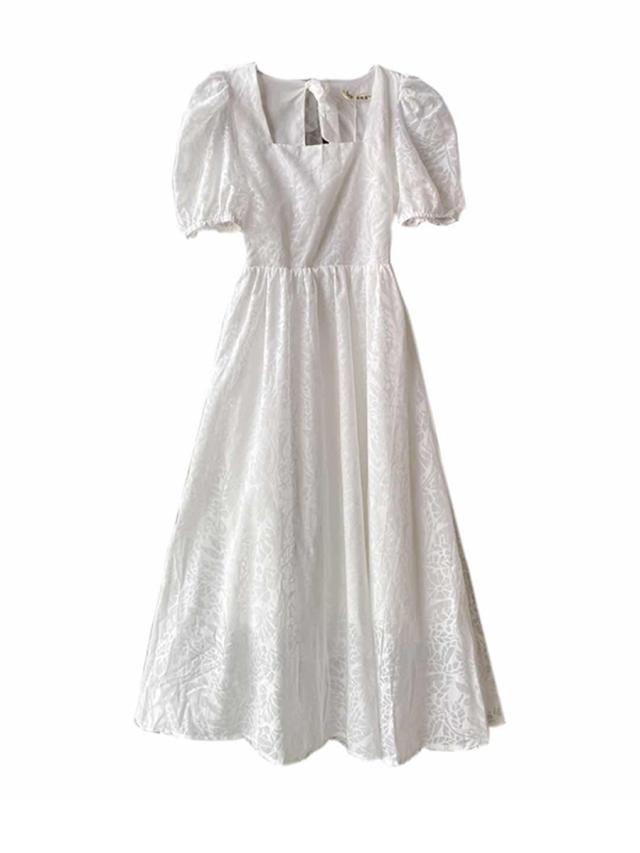 ワンピース ドレス レディース サマーワンピ 花柄 フラワー パフ袖 パフスリーブ 半袖 袖あり レース 透け感 スクエアネック レトロ クラシック 主役級 お姫様 お嬢様 バックシャン 背中魅せ 背中開き 伸縮性 リボン リボン結び ハイウエスト 切り替え フレア 大人可愛い かわいい 可愛い ラブリー キュート スイート 休日 お出かけ デート 旅行 普段着 10代 20代 S M L XL ホワイト 白