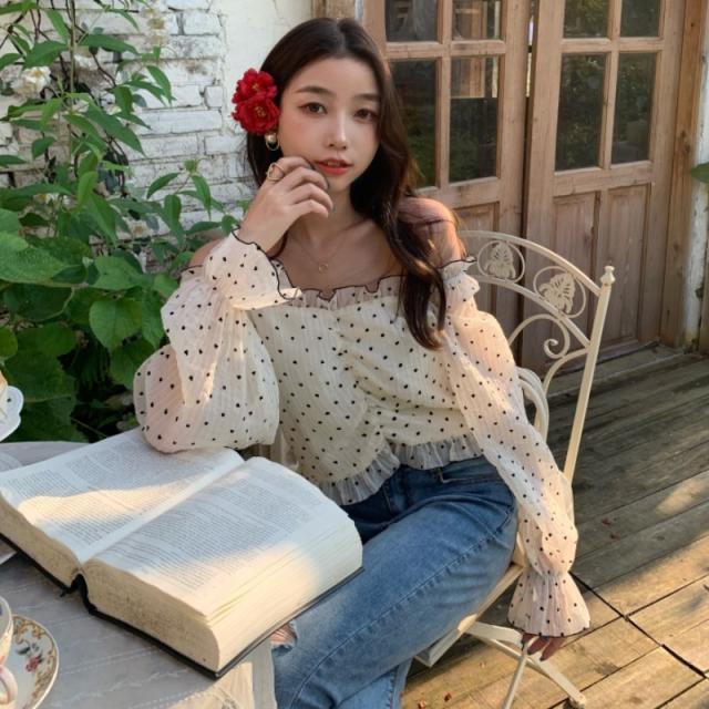 レディース シフォン ブラウス 人気 通販 おすすめ 長袖 ハート柄 オフショルダー 個性的 ギャザー フリル ボリューム袖 透け感 トップス 春 夏 大人 可愛い きれいめ カジュアル コーデ ガーリー 甘辛ミックス 通学 学生 大学生 キャンパス 肌見せ デート バカンス リゾート