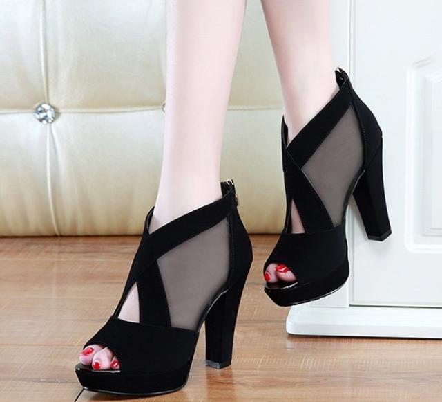 サイドシースルー チャンキーヒール フーデッドサンダル レディース シューズ 靴 異素材 切り替え 太ヒール 透け感 シースルー クロスストラップ バックファスナー フェイクスウェード きれいめ シンプル カジュアル おしゃれ 大人 かっこいい 女っぽ 抜け感 無地 春夏 黒 青