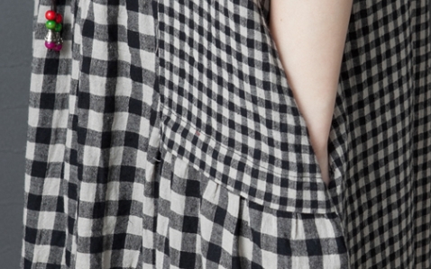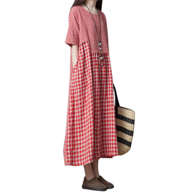 ジグザグ 斜め切り替え コットンリネン ギンガムチェック ワンピース レディース サマーワンピ ミディ丈 ミモレ丈 フレア 袖あり 半袖 ラウンドネック 綿 麻 ゆったり 体型カバー 大人可愛い シンプル カジュアル おしゃれ 春 夏 普段使い らくちん 大きいサイズ 2XL 黒 赤