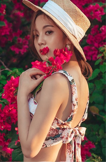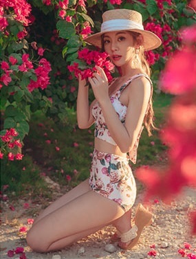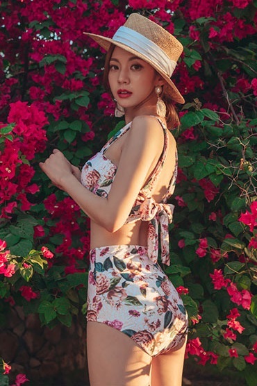 水着 レディース タンキニ スイムウェア セパレート フラワー 上下 セット タンクトップ ビスチェ ハイウエスト セットアップ ワイヤー パッド付き ナイロン バックリボン リボン結び 体型カバー おしゃれ お洒落 大人 女子 主役級 華やか 可愛い 海 ビーチ プール 夏