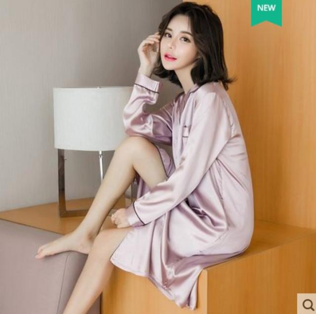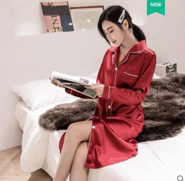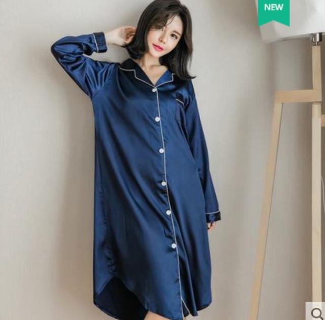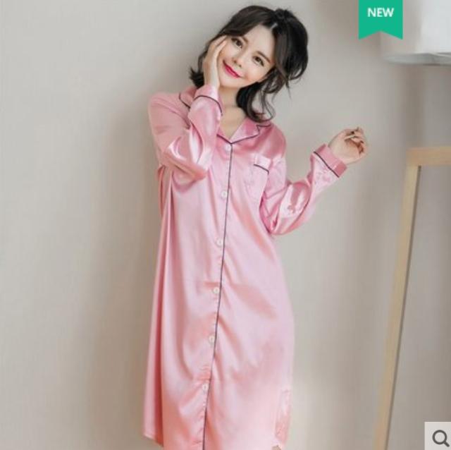 配色パイピンク 開襟 サテン ルームウエア パジャマ ワンピース シャツワンピ 部屋着 寝巻き ナイトウェア ミディ丈 長袖 襟付き オープンカラー 前開き ツヤ感 シンプル カジュアル 大人っぽい おしゃれ お洒落 らくちん 無地 春夏 秋 大きいサイズ 2XL 3XL 黒 白 紫 ピンク