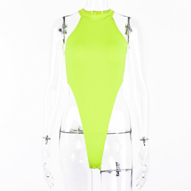 下着 レディース ジャンプスーツ 大人 セクシー ランジェリー sexy 女っぽ 個性的 インナー 蛍光 華やか 袖なし ハイレグ ハイウエスト アメリカンスリーブ ホルターネック ノースリーブ 無地 女性用 お泊り 休日 デート ギフト 誕生日 プレゼント オールシーズン シーズンレス 10代 20代 S M L グリーン 緑 オレンジ ローズレッド