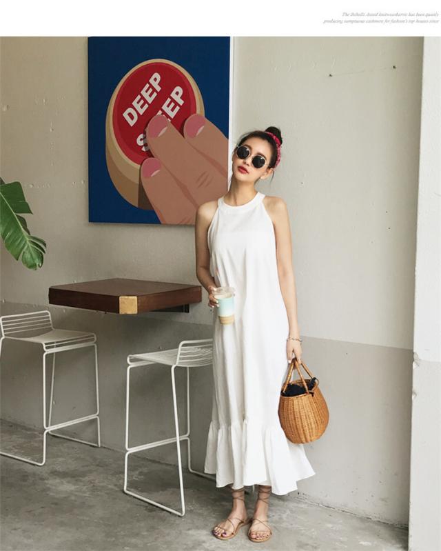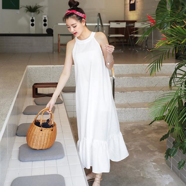ノースリーブワンピース ワンピース フレアワンピース ワンピドレス 膝下 ロング ロング丈 ノースリーブ ホルターネック セミフレア Iライン マーメイド 綿 かわいい 大人可愛い きれいめ シンプル カジュアル おしゃれ お洒落 大人可愛い 大人女子 こなれ感 ラフ ラブリー キュート ガーリー とろみ感 無地 春 夏 10代 20代 30代 レディース 学生 通学 デート お出かけ 公園デビュー 女子会 休日 着回し 普段使い 重ね着 韓国 韓国系 オルチャン モテ サイズ S M L 白 ホワイト
