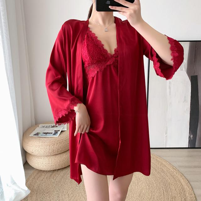 レディース ガウン 2ピース サテン パジャマ バスローブ ネグリジェ キャミソール レース 可愛い 大人可愛い シンプル おしゃれ キュート セクシー 色気 ルーズ ホームウェア お出かけ 女子会 お泊まり 休日 パーティー 旅行 春 夏 秋 冬 オールシーズン M L XL 女子力