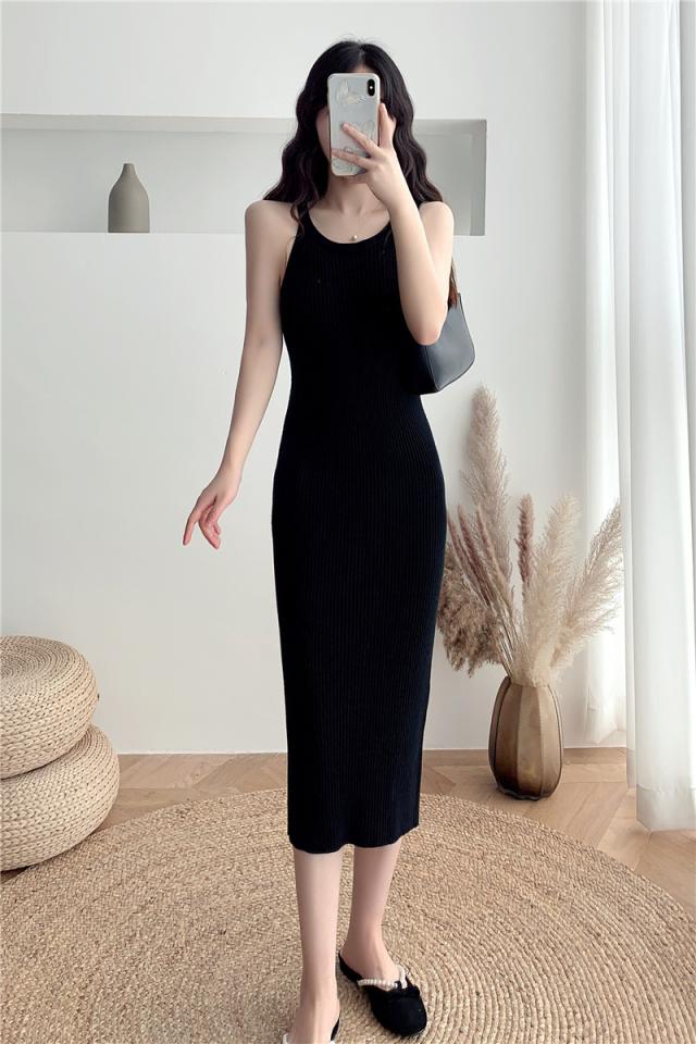ニットワンピース ワンピース 膝丈 ひざ丈 膝上 ミディアム丈 袖なし ラウンドネック タイト 細身 Iライン かわいい 大人可愛い きれいめ シンプル 大人 上品 おしゃれ お洒落 大人可愛い 大人女子 無地 春 夏 10代 20代 30代 40代 レディース デート お出かけ 公園デビュー 女子会 休日 普段使い 韓国 韓国系 オルチャン サイズ S M L ホワイト 黒 ブラック 紫 パープル ベージュ アプリコット
