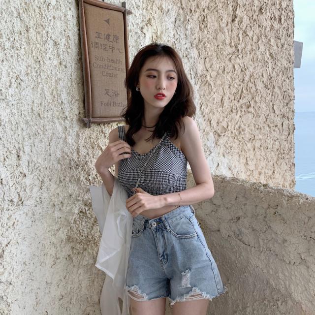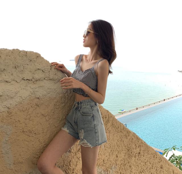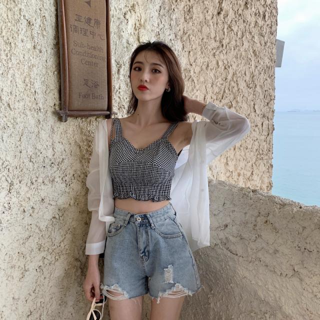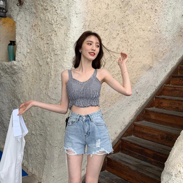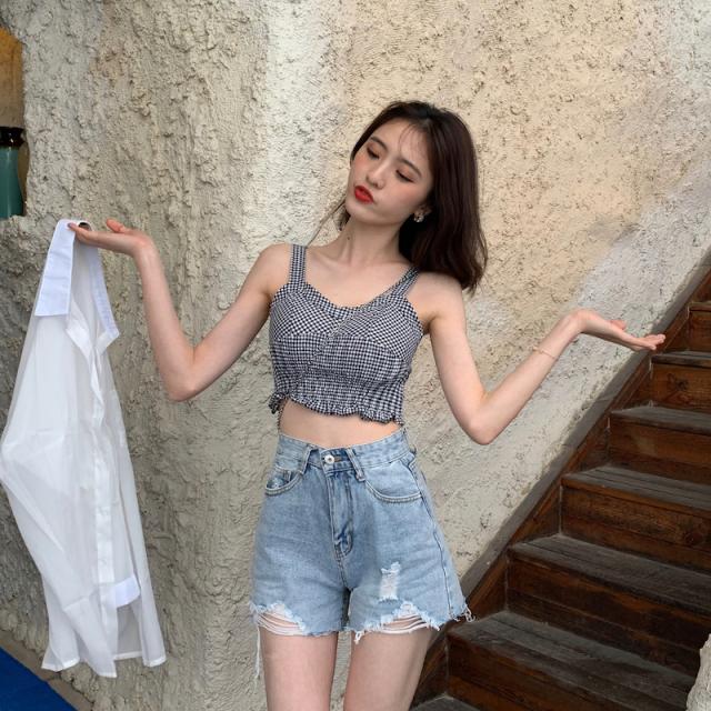 ギンガムチェックビスチェ トップス キャミソール ショート ショート丈 袖なし ノースリーブ タイト 細身 フリル かわいい 大人可愛い シンプル カジュアル おしゃれ お洒落 大人可愛い 大人女子 ラブリー キュート ガーリー チェック柄 春 夏 10代 20代 30代 レディース 学
