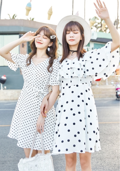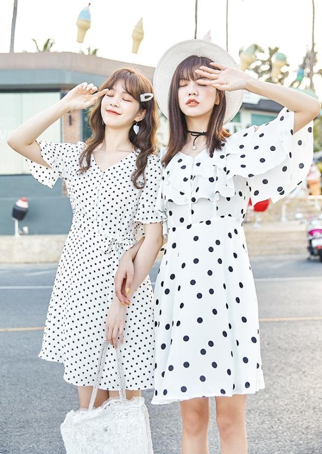 ガーリー感高まるドット柄のミニ丈ワンピース♪