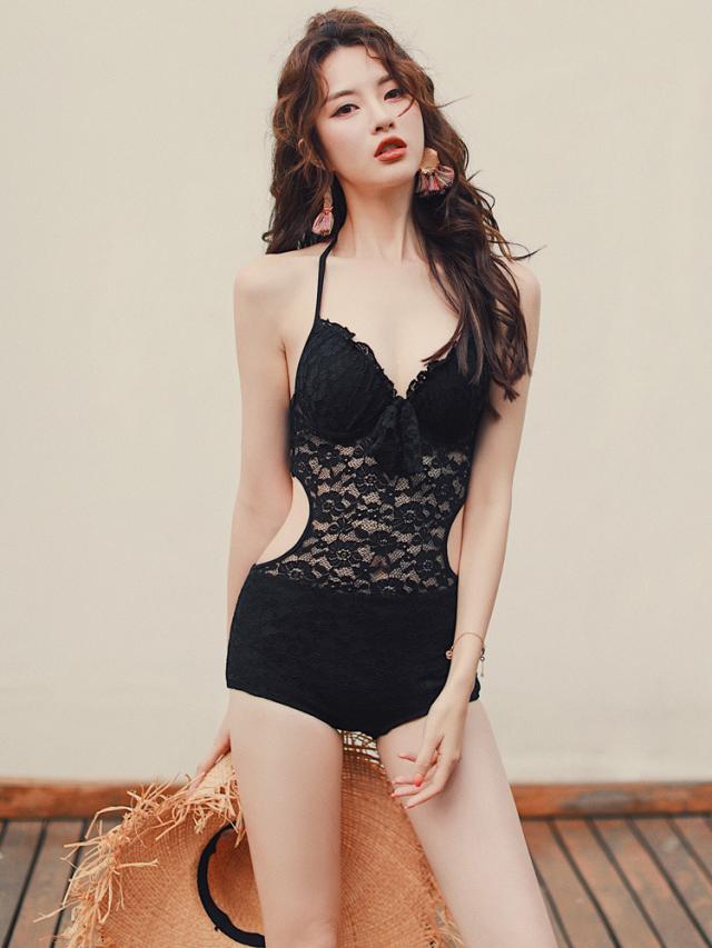 上品なレースで仕立てたワンピース水着♪