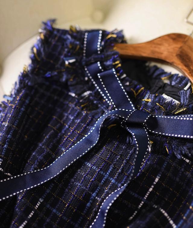 首元のリボンがアクセントのツイードワンピース♪