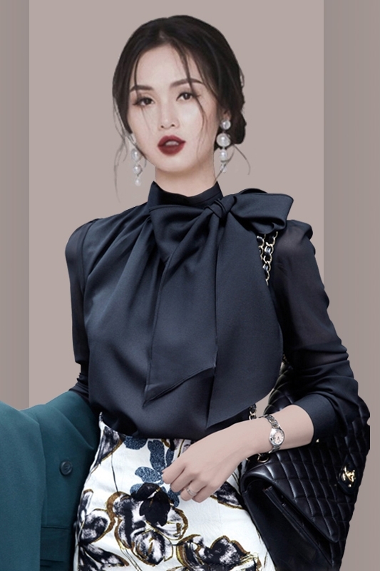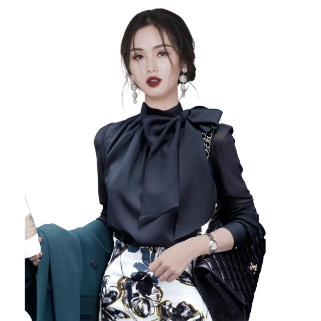 シフォン ブラウス 秋 レディース おしゃれ オフィス シャツ フォーマル 黒 韓国 演奏会 きれいめ リボン 光沢 とろみ感 立ち襟 トップス 長袖 スタンドカラー 大人 可愛い きれいめ シンプル カジュアル こなれ感 柄 春 夏 OL 通勤 学生 通学 デート お出かけ 女子会 休日