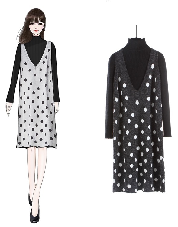 ニットセーターにVネックワンピースを重ねた2点セット♪