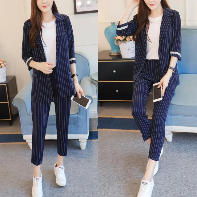 ストライプが爽やかで可愛いスーツとパンツのセットアップ♪