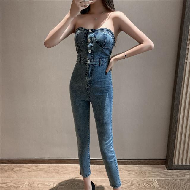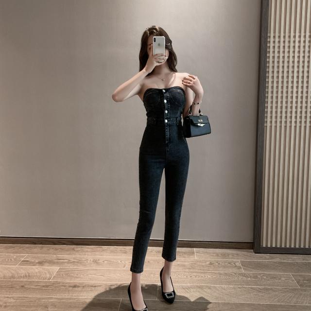 デニムのチューブトップ型がかっこいいジャンプスーツ♪