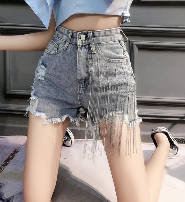 デニム ショートパンツ ハイウエスト ボトムス レディース 無地 ダメージ 切りっぱなし タッセル チェーン アシンメトリー ミニ 膝上 個性的 韓国 大人 可愛い きれいめ シンプル カジュアル セクシー お洒落 かっこいい 着痩せ 着回し 普段使い デート OL 学生 春 夏 秋 冬