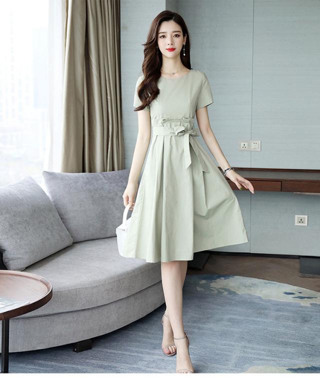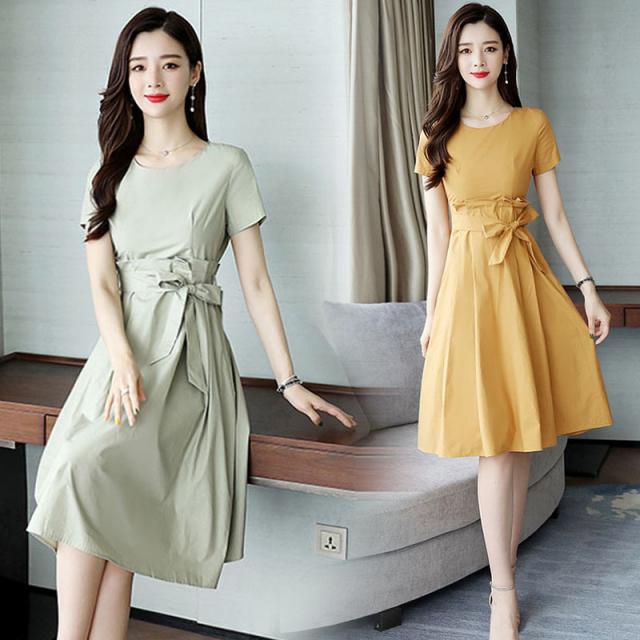 ドッキングワンピース ワンピース フレアワンピース 膝丈 ひざ丈 袖あり 半袖 ラウンドネック リボン ウエストリボン ドッキング かわいい 大人可愛い きれいめ シンプル カジュアル おしゃれ お洒落 大人可愛い 大人女子 こなれ感 ラブリー キュート ガーリー 主役級 無地 春 夏 10代 20代 30代 レディース 学生 通学 デート お出かけ 女子会 休日 普段使い 重ね着 韓国 韓国系 サイズ M L XL 2XL 色展開 青 ブルー 緑 グリーン 黄色 イエロー