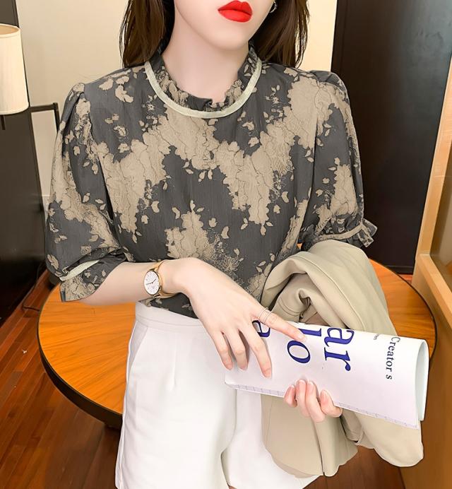 スタンドカラー花柄ブラウス トップス ブラウス 袖あり 5分袖 五分袖 スタンドカラー ポリエステル かわいい 大人可愛い きれいめ シンプル カジュアル 大人 おしゃれ お洒落 大人可愛い 大人女子 キュート ガーリー 柄 花柄 フラワー 春 夏 10代 20代 30代 レディース 学生 通学 デート お出かけ 公園デビュー 女子会 休日 着回し 普段使い 重ね着 韓国 韓国系 サイズ S M L XL 色展開 青 ブルー 茶色 ブラウン ピンク